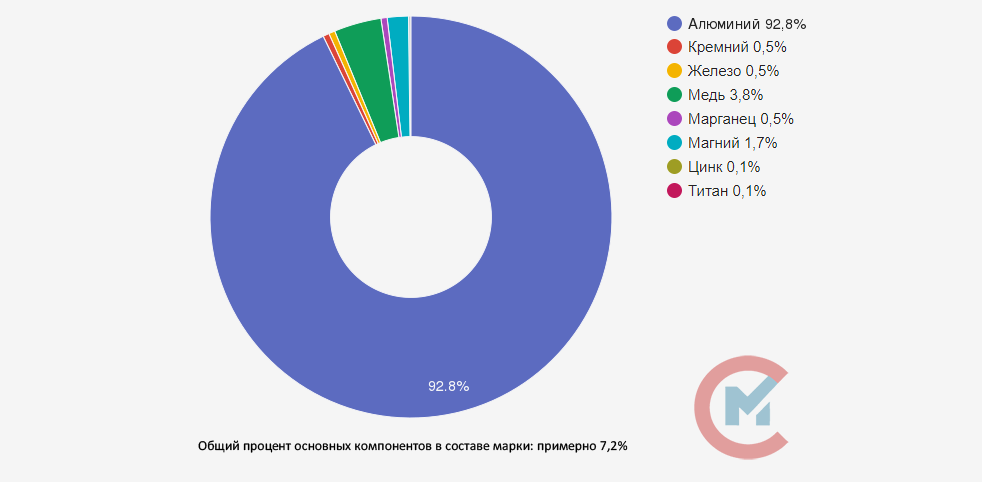 ГОСТ 4784-2019 определяет химический состав и свойства, согласно которым, сплав определяется как дюралюмин. Сплав может подвергаться различным вариантам термообработки: закалка, старение, отжиг. Основные технические показатели: удельный вес: 2760 кг/м3; твердость: 440-450 МПа для листов, 350-450 МПа для панелей; температура закалки: 500-510 °С для листов, 495-505 °С для изделий, производимых прессованием.