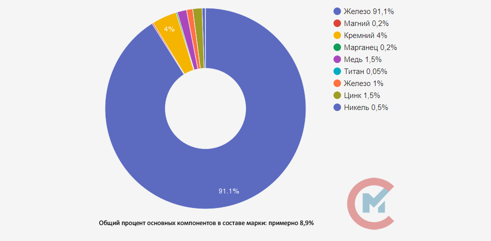 АК5М2 — это металлический сплав, его основой является алюминий (Al), содержание которого может варьироваться от 85,9% до 94,05%. Сплавы АК5М2 неизбежно включают кремний, медь, магний, марганец и титан.
