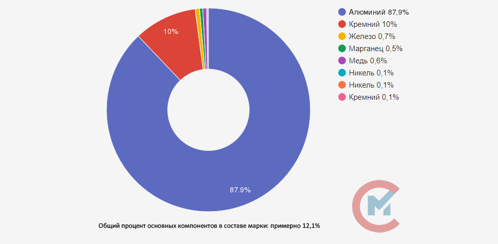 - Алюминий (Al) 84,3-90%