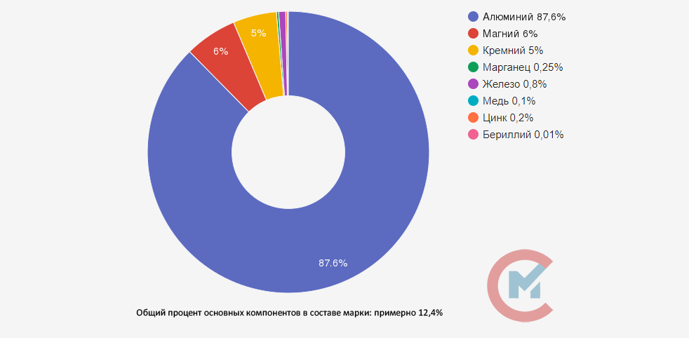 АЛ29 представляет собой металлический сплав на основе алюминия, содержание которого может варьироваться от 89,4% до 93,25%. Магний, кремний и марганец обязательно содержатся в сплаве. Допустимое количество примесей определяется таблицей химического состава.