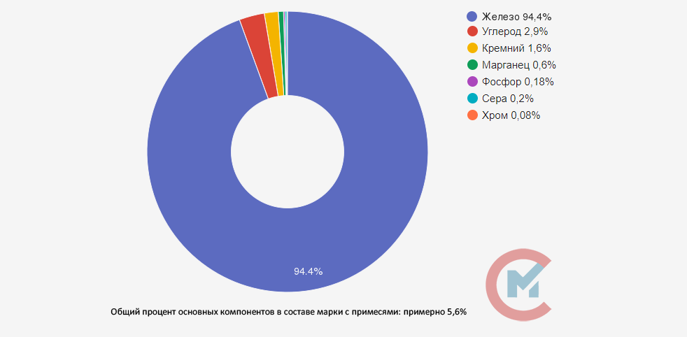 Ковкий чугун маркируется с помощью следующих обозначений: КЧ – ковкий чугун, 30 – показатель предела прочности, 6 – относительное удлинение.