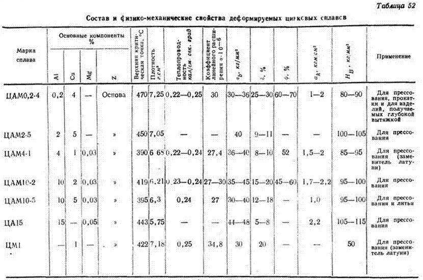 Каждый сплав маркируются ЦАМ2-5, где: Ц-цинк, который является основой; А-алюминий, с содержанием 2%; М-Медь, с содержанием 5%.
